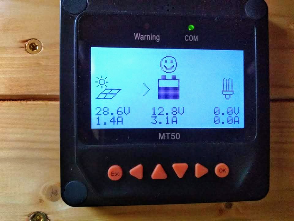 Ráno si všímám, že máme úplně vybitou baterku a odpojenou všechnu elektřinu. Tak takhle se asi cítí neplatiči! Mám náladu pod psa, ale aspoň tu snídani jdu udělat. Leo se mezitím taky vykope z postele a jde se tentokrát šťourat v baterce. Naštěstí tento problém je snadné vyřešit. Byl tam jen špatný kontakt na kabelech. Jen co to znovu připojí, solární panely nám hned začínají dobíjet a baterka se raduje.