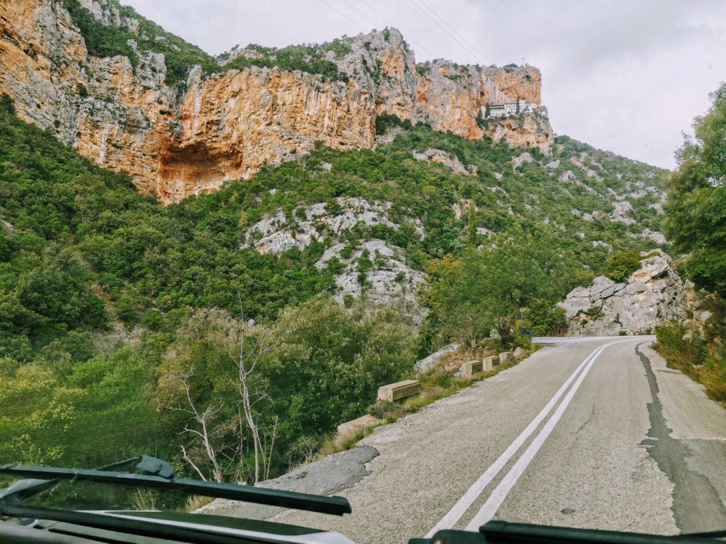 Na sobotní ráno jsem se těšila. Celý týden jsme měli docela hezké počasí a vypadalo to, že snad bude i o víkendu. Bohužel se to ale v pátek večer začalo měnit a v sobotu nás přivítaly jen mraky. Nenechali jsme se ale odradit! Projeli jsme městem Leonidio a vydali se do hor. Cesta vedla v serpentinkách údolíčkem pomalu do kopce.