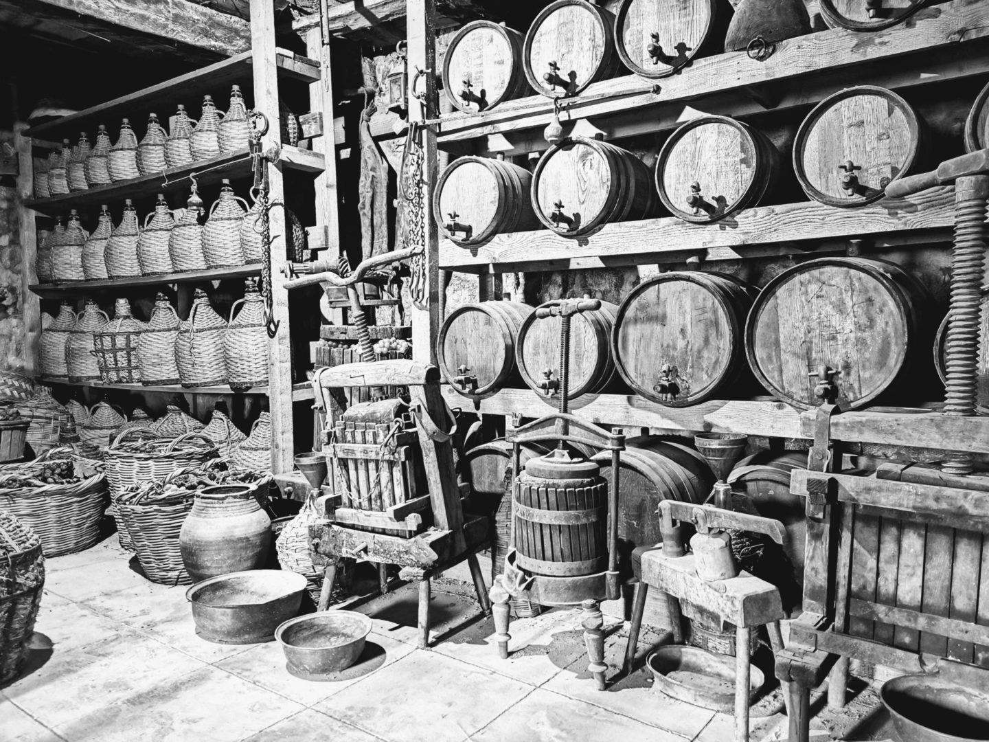 Ve sklípku pro mnichy nesmí chybět vybavení na výrobu vína!