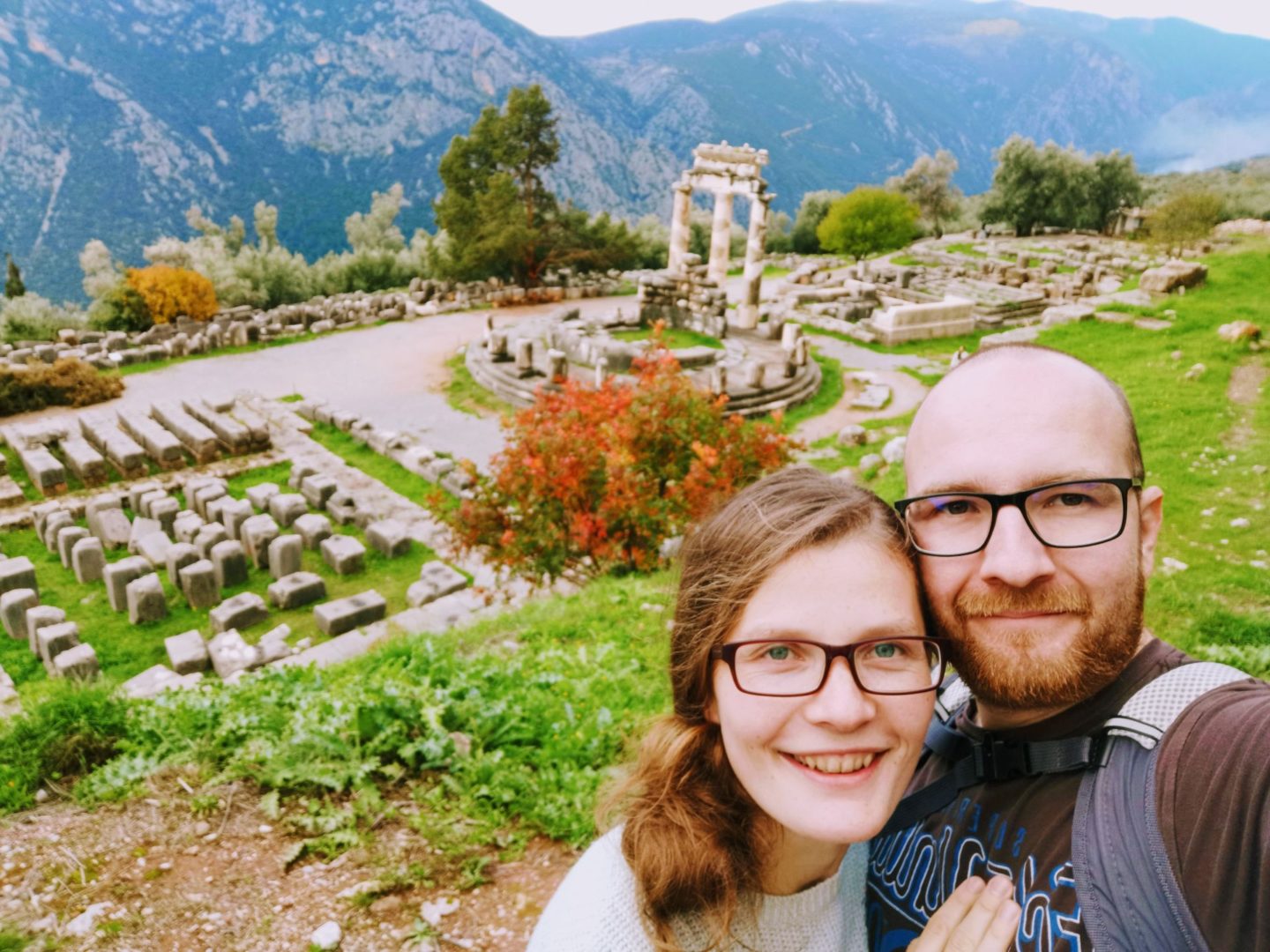 Dojeli jsme až k Delfám, kde jsme si další den prošli památky, muzeum a zašli do města na gyros a kafe. Skvělý den a počasí k tomu! Když jsme seděli na terase kavárny, svítilo slunce a lehce pofukovalo. Majitel nás ujišťoval, že si klidně můžeme jít sednout dovnitř, kdyby nám bylo zima. A nejvíc ho dostalo, když si Leo ještě objednal zmrzlinu! :D